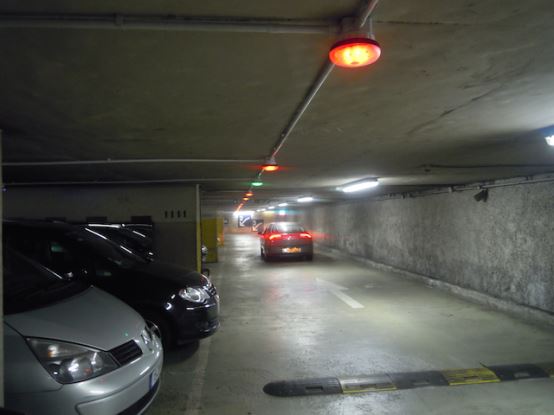 Vịnh đèn LED chỉ báo được cài đặt ở trước nơi trên từng bãi đậu xe không gian để xác định trống tại bởi ánh sáng màu xanh lá cây và chiếm đóng những cái màu đỏ (cho không gian đậu xe tiêu chuẩn) hoặc màu xanh (cho các không gian đậu xe vô hiệu hóa). Với những thông tin thị giác, trình điều khiển có thể nhận ra và tìm xe dễ dàng.